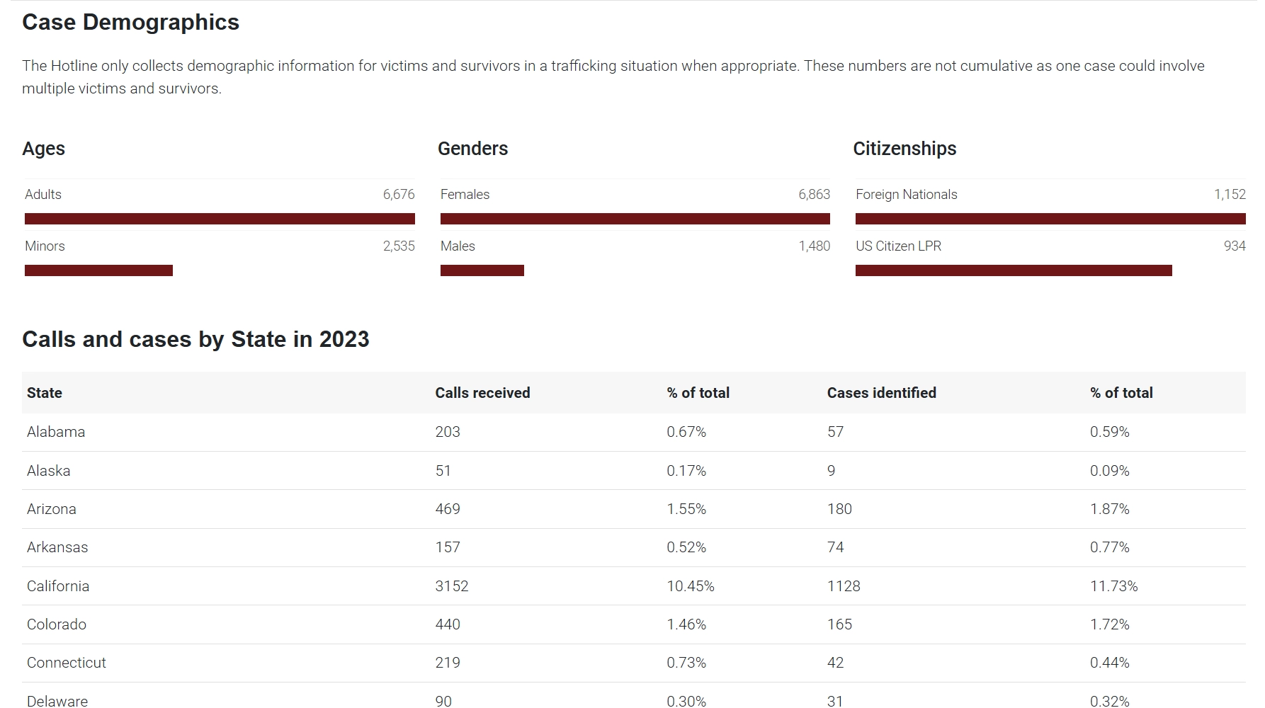 In 2021, the U.S. National Human Trafficking Hotline received reports of